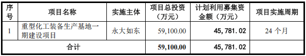 本次募集资金投资项目是在公司现有主营业务基础上,为满足市场需求,结合国家产业政策和行业发展特点,依托公司现有核心技术而实施的投资计划。“重型化工装备生产基地一期建设项目”旨在在如东洋口港建设重型化工装备生产基地,利用港口优势承接超大型压力容器设备,大幅降低运营成本,提升运输效率,从而有效增强公司的生产能力和订单承接能力,满足客户日益增长的订单需求,为公司未来持续发展提供有力支撑,并增强公司盈利能力。项目建成达产后,预计将新增压力容器30,000吨/年的生产能力。