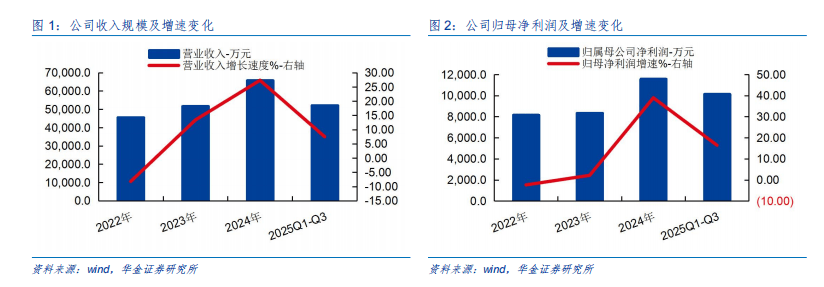 根据最新披露的财务数据显示,新广益近年业绩呈现稳健增长态势。2022年至2024年,公司营业收入分别为4.55亿元、5.16亿元和6.57亿元,同比增速依次为-8.23%、13.37%和27.32%,增长明显提速。同期,归母净利润分别为0.82亿元、0.83亿元和1.16亿元,同比变动幅度为-2.38%、2.17%和38.93%,盈利能力在2024年实现显著增强。增长势头在2025年得以延续。2025年1-9月,公司实现营业收入5.21亿元,较2024年同期增长7.50%;实现归母净利润1.01亿元,同比增长16.43%,继续保持双增局面。