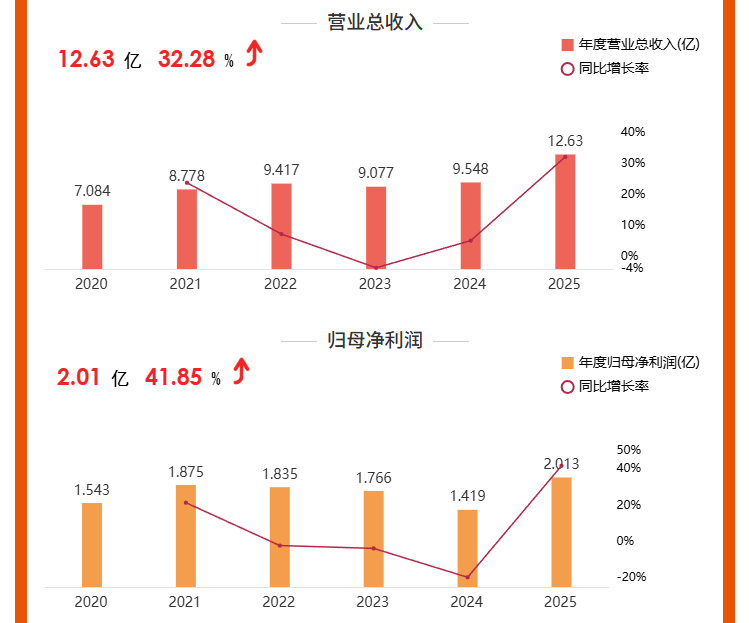 4 月 22 日晚间,江苏锡华新能源科技股份有限公司(下称 “锡华科技”)披露上市后首份年度报告。公司于 2025 年 12 月成功登陆上交所主板,当年实现营业收入 12.63 亿元,同比增长 32.28%;归母净利润 2.01 亿元,同比增长 41.85%;基本每股收益 0.56 元,同比增长 43.59%。公司拟每 10 股派发现金红利 1.6 元(含税),分红比例达 36.56%,以稳健分红积极回馈股东。同日披露的 2026 年第一季度报告显示,公司当期实现营业总收入 2.87 亿元,同比增长 19.15%。