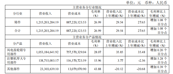 在风电齿轮箱专用部件铸件这一核心细分赛道,2022—2024 年锡华科技相关产品全球市场占有率稳定在约 20%,稳居行业第一梯队,成为全球多家头部风电企业不可或缺的核心供应商。2025 年,该核心业务实现营收 10.53 亿元,同比增长 35.85%,占总营收比重超 83%,为公司业绩增长的绝对支柱。